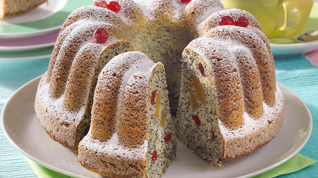 - Bábovkovou formu vymažeme tukem, vysypeme moukou, naplníme těstem a povrch uhladíme. Pečeme v předehřáté troubě při 170 °C asi 50 minut. Upečenou bábovku necháme ve formě mírně zchladnout a pak ji opatrně vyklopíme. Vychladlou bábovku posypeme moučkovým cukrem a podáváme.