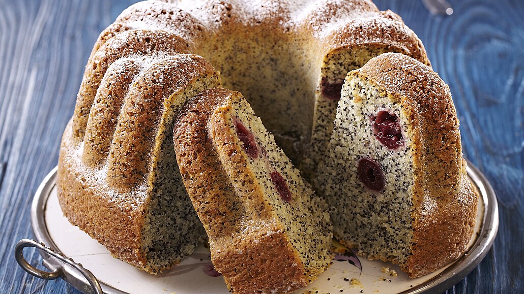 - Bábovkovou formu vymažeme tukem a vysypeme moukou. Do formy nalijeme třetinu těsta, rozložíme polovinu okapaných višní, nalijeme druhou třetinu těsta a rozložíme zbylé višně. Nakonec nalijeme zbylé těsto a povrch uhladíme.