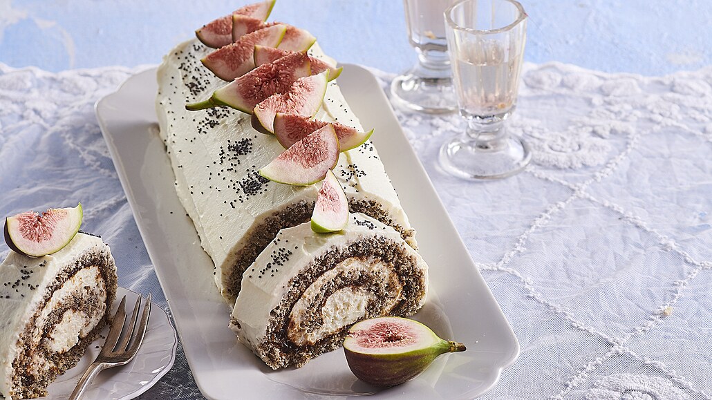 - Povrch rolády potřeme zbylým krémem a ozdobíme pokrájenými fíky, můžeme zlehka posypat mákem.