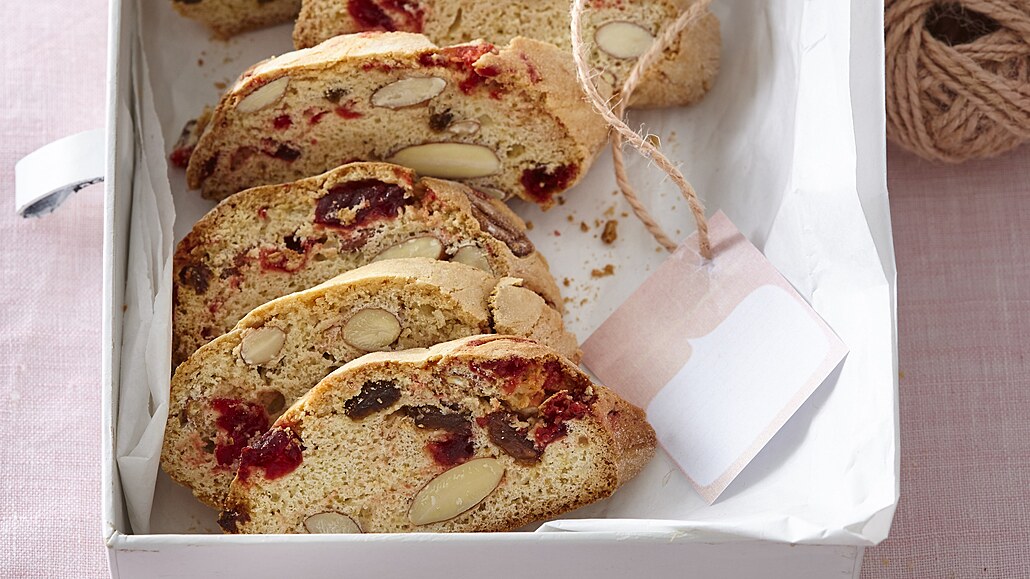 - Plátky sušenek rozložíme na plechy vyložené pečícím papírem a dopékáme při 150 °C dalších 15 minut. Po upečení necháme vychladnout na kovové mřížce a pak uzavřeme do dózy.