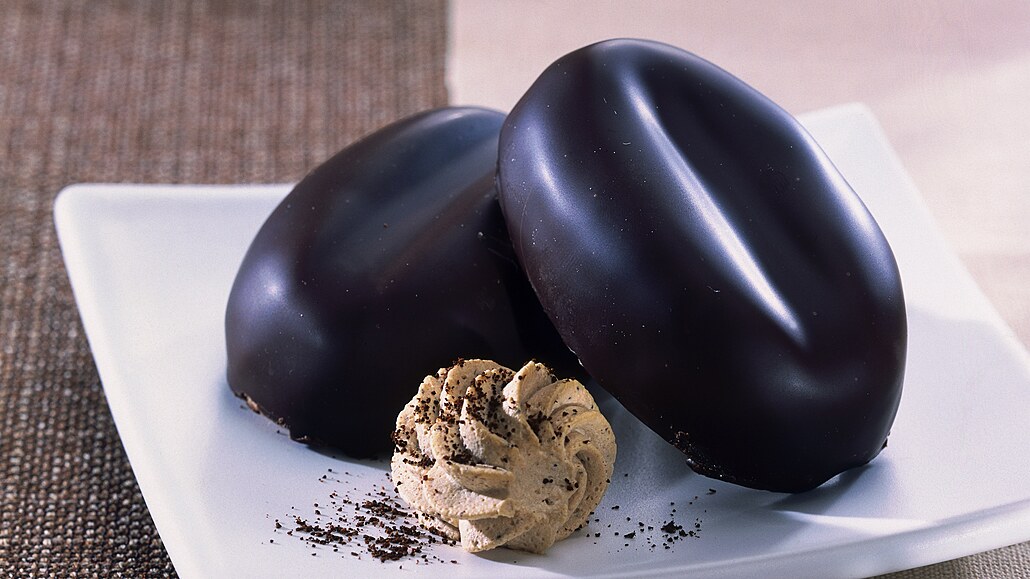 - Odkrojky spojíme s druhou polovičkou těsta a vyválíme opět na slabý plát. Z těsta vykrajujeme o něco větší oválky. Klademe je přes krém, okraje spojíme, začistíme a ručně vytvarujeme kávová zrna. Necháme vychladit.