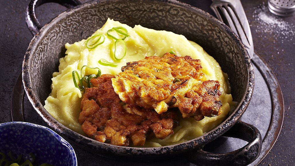 - Usmažené masové placičky můžeme podávat s bramborovou kaší nebo vařenými bramborami.