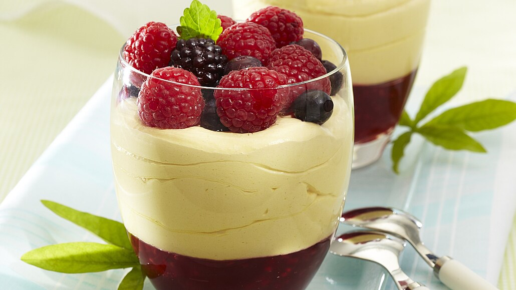 - Ovoce očistíme, omyjeme a na sítku necháme okapat. Pak jím ozdobíme jednotlivé pohárky.