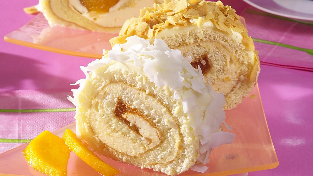 - Ztuhlou roládu rozbalíme, potřeme zbylým krémem a střídavě posypeme praženým a nepraženým kokosem.