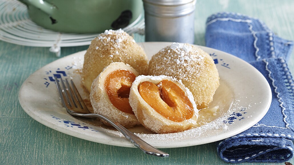 - Meruňky omyjeme, osušíme a vypeckujeme. Odleželé těsto rozdělíme na 12 dílků a do každého zabalíme vypeckovanou meruňku.