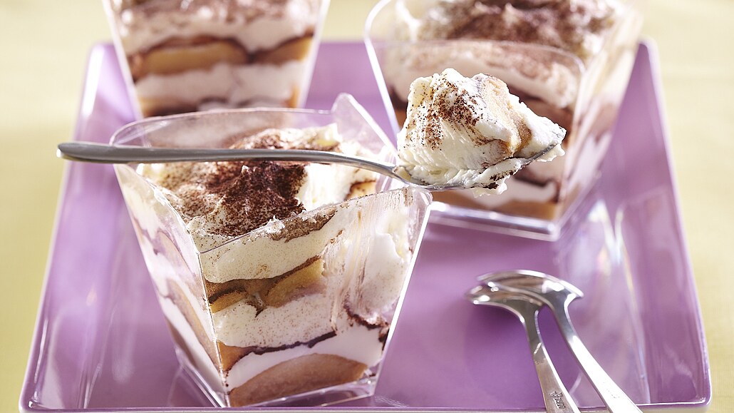 - Připravíme si pohárky nebo skleničky na dezerty. Piškoty namočíme do kávy, vložíme do pohárků, zakryjeme krémem a posypeme vrstvičkou kakaa.