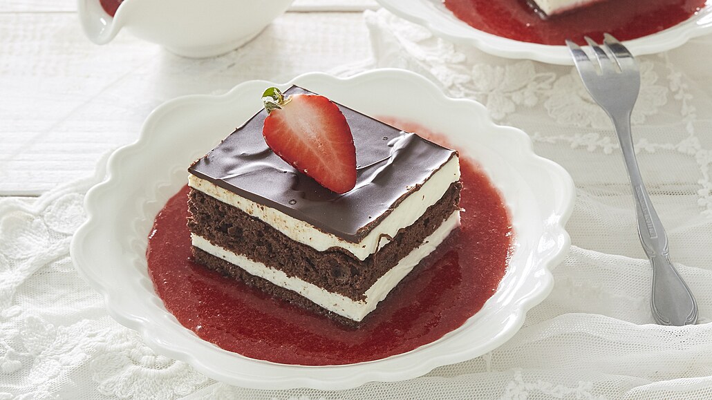 Klasické míša řezy zná asi každý, tyto jsou však ozvláštněné jahodovou omáčkou.
