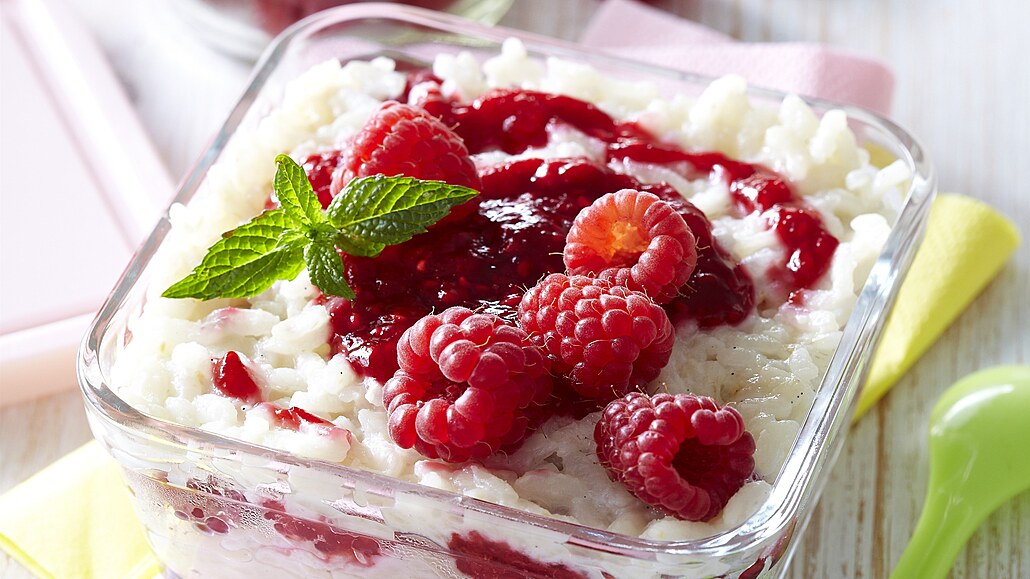 - Rýži necháme vychladnout a rozdělíme do misek. Podáváme ji s malinovým džemem a čerstvým ovocem.