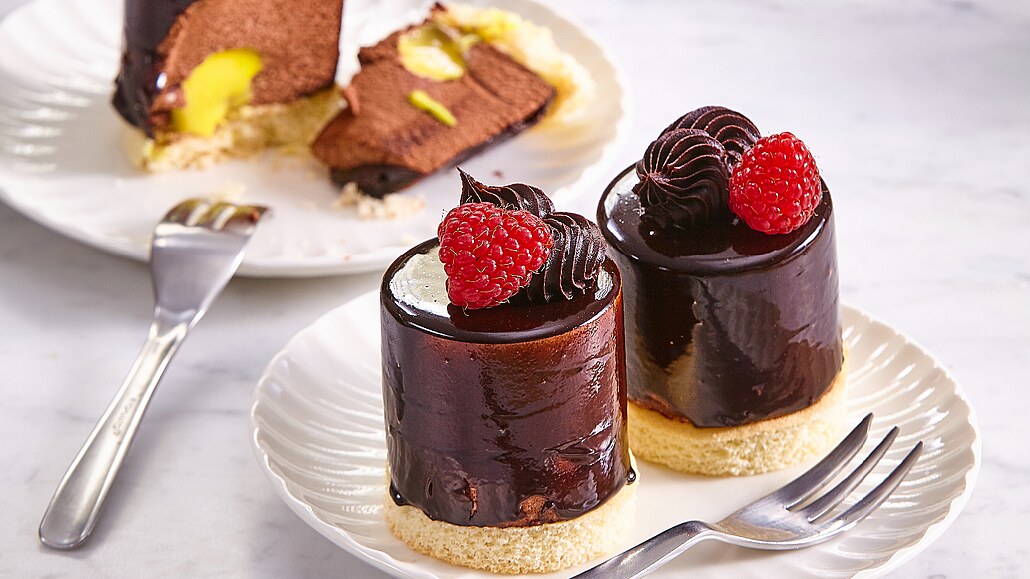 - Uprostřed lžičkou přidáme likér a potřeme krémem. Necháme ztuhnout v lednici. Poté vyklopíme, polijeme polevou a přendáme na korpusy. Povrch ozdobíme například malinami.
