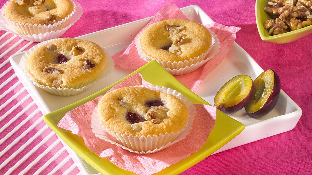 - Švestky omyjeme, vypeckujeme a nakrájíme na větší kousky. Vlašská jádra nasekáme na větší kousky. Pak švestky a vlašská jádra zamícháme do těsta.