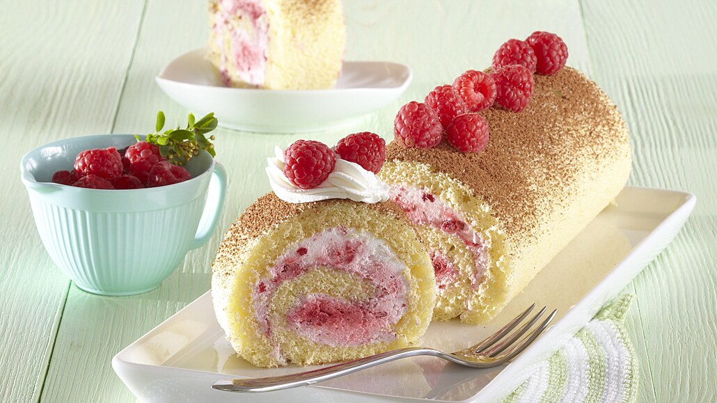 - Maliny (100 g) očistíme a smícháme s cukrem. Vidličkou je rozmačkáme a vmícháme do šlehačky. Náplň rozetřeme na korpus a pomocí papíru stočíme do rolády. Roládu zabalíme do papíru a necháme v chladničce ztuhnout. Pak ji vybalíme, povrch posypeme kakaem, ozdobíme zbylými malinamia podle chuti i šlehačkou.