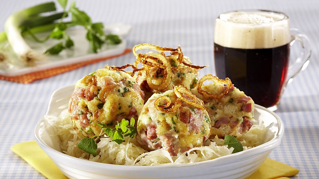 - Zbylou cibuli nakrájíme na kolečka a osmažíme na zbylém sádle dozlatova. Špekové knedlíky podáváme se zelím, posypané cibulkou.