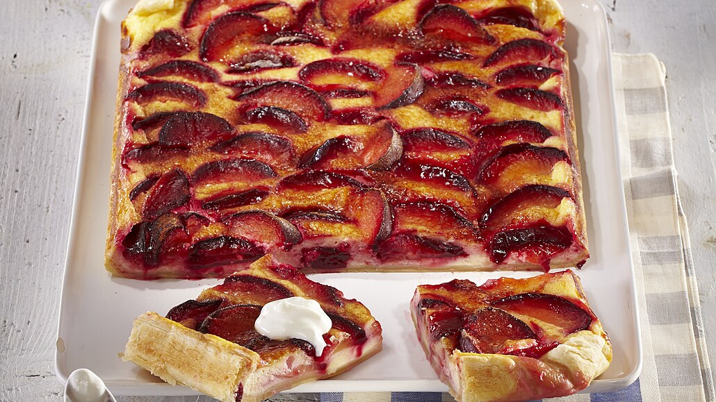 - Blumy omyjeme, osušíme, vypeckujeme a nakrájíme na plátky. Pak je rozložíme na náplň v pekáčku.