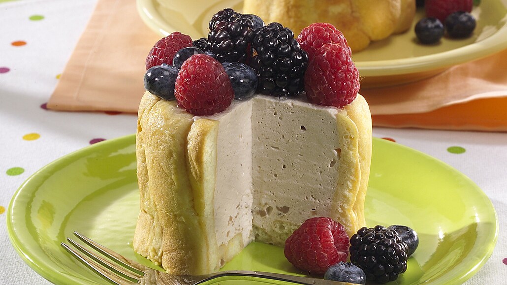 - Připravený základ necháme vychladnout a poté do néj vmícháme želatinu rozpuštěnou v asi 100 ml horké vody. Opět necháme vychladnout a lehce vmícháme ušlehanou šlehačku. Touto hmotou naplníme hrnečky a nožem zarovnáme rovně povrch. Dáme do lednice a necháne ztuhnout minimálně 2 až 3 hodiny. Potom charlottky vyklopíme na talířky a ozdobíme čestvým lesním ovocem.