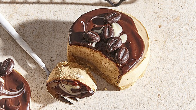 - Uvaříme silné espreso a v něm rozpustíme nabobtnalou želatinu vymačkanou od přebytečné vody. Tekutinu zlehka vmícháme do sýrové směsi. Náplň rozdělíme do formiček s nepečeným korpusem a necháme zatuhnout v lednici.