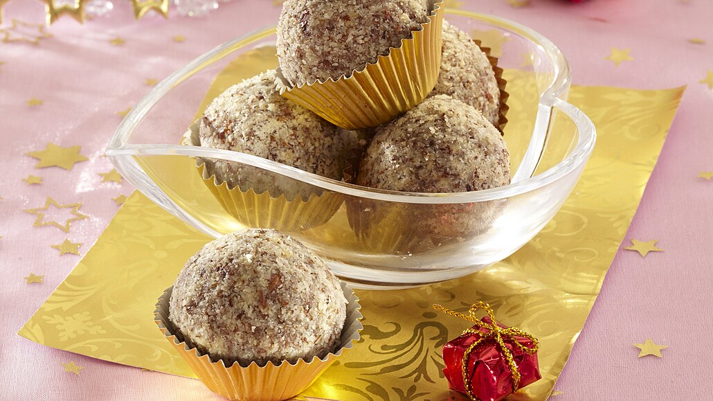 - Z připravené hmoty vytvarujeme kuličky. Obalíme je v mletých oříškách a posadíme do papírových košíčků.
