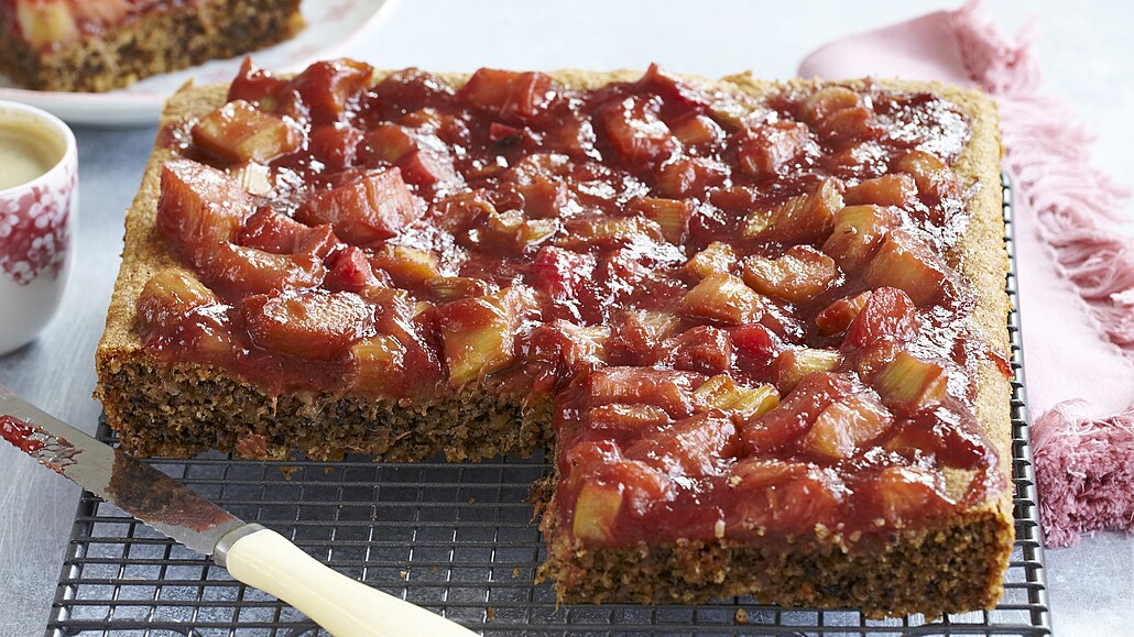 - Řapíky rebarbory očistíme a nakrájíme na menší kousky. Dáme je do kastrůlku, přidáme džem a škrob a asi 3 minuty povaříme. Ještě teplou náplň rozetřeme na vychladlý korpus a necháme ztuhnout.