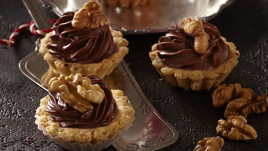 - Ve vodní lázni rozpustíme na kousky nalámanou čokoládu. V kastrůlku přivedeme k varu smetanu a necháme ji zchladnout asi na 40 °C. Pak do smetany přidáme rozpuštěnou čokoládu spolu s amarettem a vymícháme hladký krém. Pomocí cukrářského sáčku košíčky naplníme krémem, ozdobíme je kouskem vlašského ořechu a necháme v chladu zatuhnout. Cukroví uchováváme v lednici.