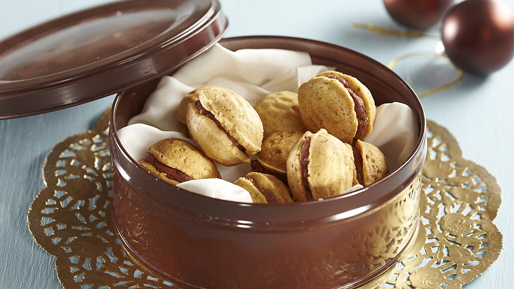 - Těsto po kouscích vtlačíme do vymazaných formiček. Rozložíme je na plech, vložíme do trouby vyhřáté na 170 °C a pečeme asi 12 minut dohněda. Upečené ořechy vyklepneme z formiček a necháme vychladnout. Pak je naplníme čokoládovým krémem, po dvou slepíme k sobě a necháme ztuhnout.