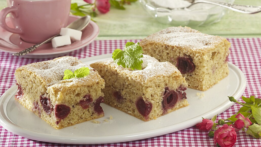 - Pekáček vymažeme tukem, vysypeme moukou a těsto do něj rozetřeme. Okapané višně obalíme ve škrobu a těsto jimi poklademe. Bublaninu pečeme při 180 °C asi 35 minut. Po vychladnutí ji nakrájíme a pocukrujeme.