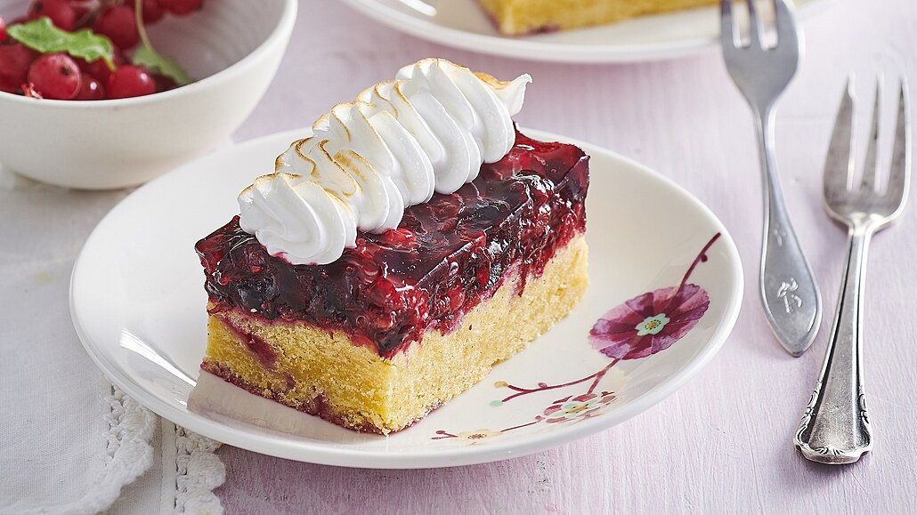 - Želatinu zalijeme 60 ml studené vody a necháme nabobtnat. Ovoce necháme rozmrazit, smícháme s cukrem a přivedeme k varu, sejmeme z plotny a přimícháme želatinu. Jakmile se želatina rozpustí a směs zchladne na pokojovou teplotu, nalijeme ji na těsto a necháme ztuhnout v chladničce aspoň 2 hodiny.