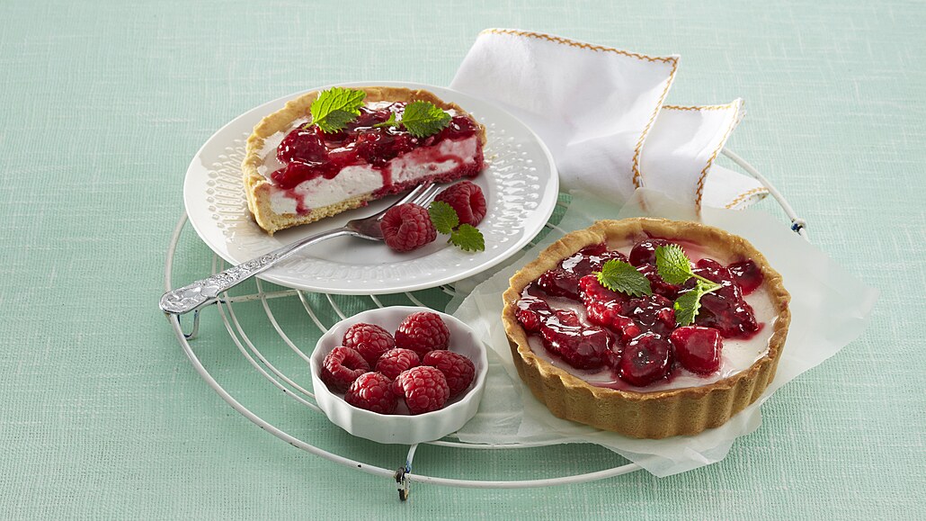 - Náplň nalijeme do korpusů. Koláčky necháme zatuhnout v chladničce. Dortové želé připravíme dle návodu na obalu. Navrch koláčků rozložíme maliny nebo jiné ovoce a přelijeme želé. Znovu necháme zatuhnout.