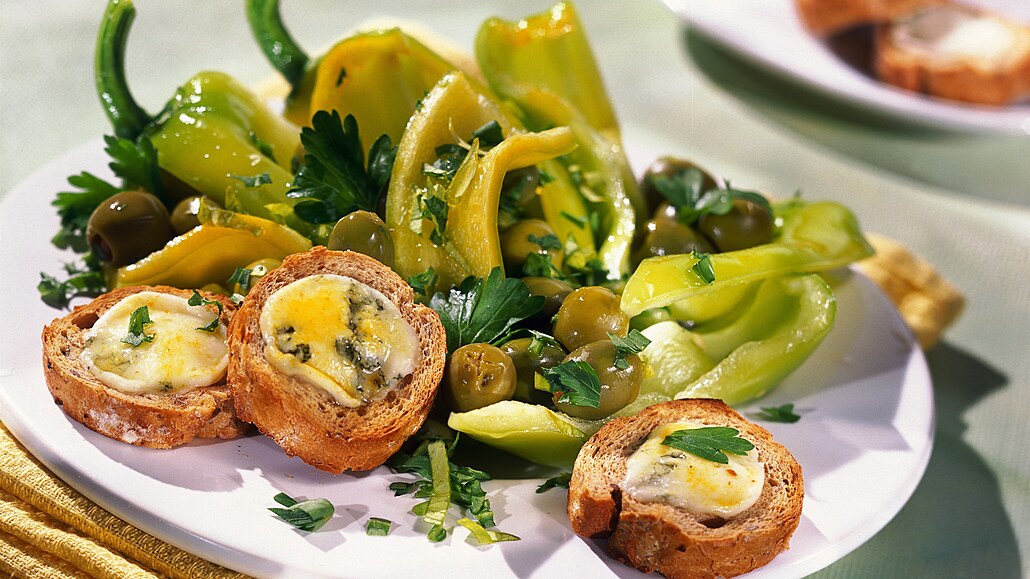 - Kozí sýr pokrájíme na malé kousky, poklademe je na malé chlebové krutony nakrájené z plátků bagety a zapečeme pod grilem. Pokud máme málo času, podáváme jako přílohu jen chlebové tousty opečené v toustovači.