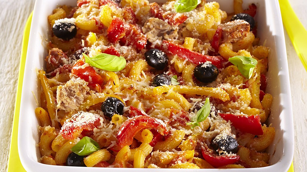 Parmazánové zapečené těstoviny s tuňákem – Klasická večeře s olivovým olejem