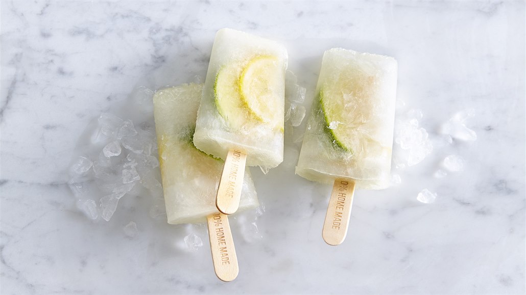- Do každého tvořítka na nanuk vmáčkneme jedno kolečko limety a jedno citronu. Pak vlijeme tekutinu, uzavřeme a do otvoru víčka vložíme tyčku. Dáme mrazit nejlépe do druhého dne.