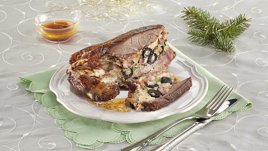 Pečená telecí kýta s olivovou nádivkou a šunkou – Luxusní sváteční pečeně pro gurmány