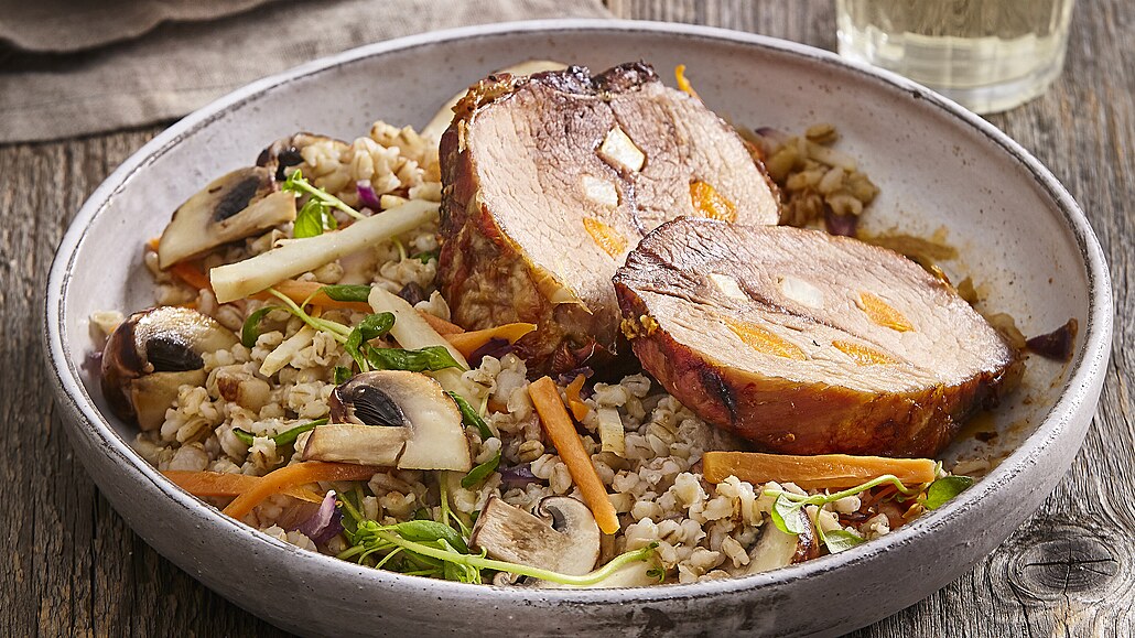 - Po chvíli osolíme, opepříme, po 1 minutě přisypeme kroupy a ochutíme mletým kmínem. Společně pár minut restujeme, pak vmícháme majoránku a podáváme s masem.