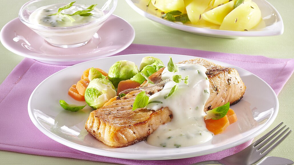 - Mezitím si připravíme omáčku. Máslo rozpustíme, přidáme hladkou mouku a uděláme světlou jíšku. Zalijeme ji vývarem a metličkou důkladně rozšleháme. Omáčku necháme asi 10 minut provařit, pak přilijeme smetanu a opět krátce prohřejeme. Nakonec omáčku dochutíme solí a nasekaným estragonem.