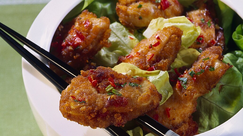 - Z chilli papričky odstraníme semínka a nasekáme ji najemno spolu s mladou cibulkou. V jiné pánvi rozpálíme slunečnicový olej, nasypeme do něj nasekanou chilli papričku s cibulkou a kratičce orestujeme. Pak do pánve přidáme usmažené kuřecí kousky, promícháme je s orestovanou chilli papričkou a cibulkou a jen krátce prohřejeme. Podáváme na listu zeleného salátu např. s bambusovými výhonky a klíčky, podle chuti můžeme ještě pokapat sójovou omáčkou.