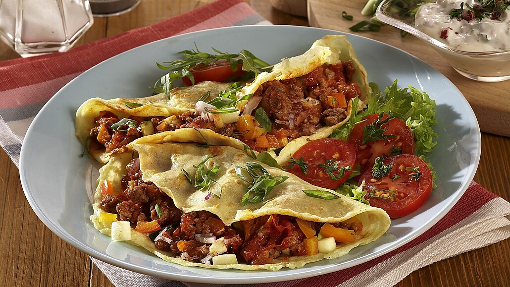 Pikantní masové palačinky se zeleninou a smetanou – Šťavnatá večeře připravená na pánvi