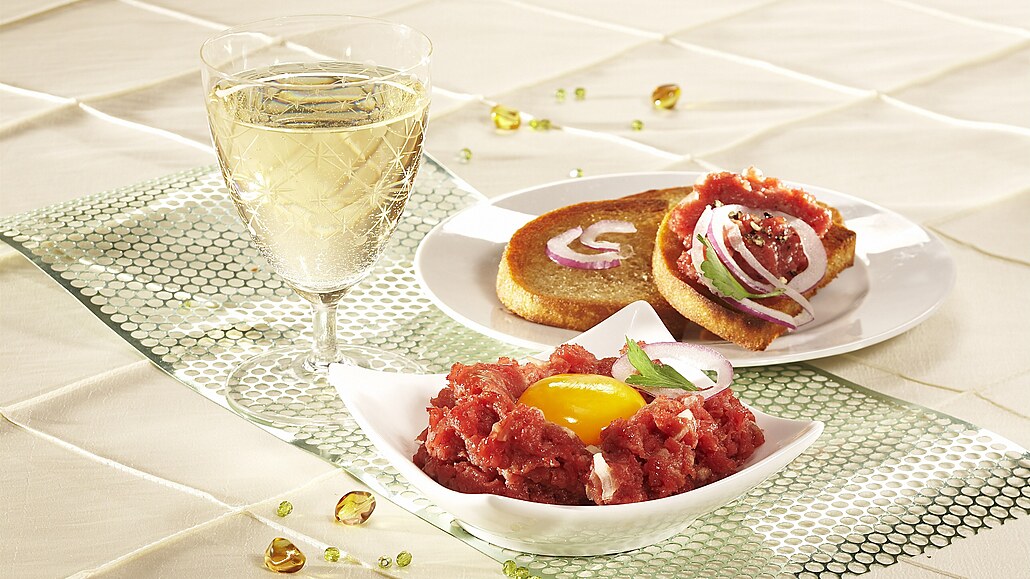 - V míse smícháme žloutky, olej a hořčici, ochutíme tabascem, worcesterskou omáčkou a brandy. Podle chuti osolíme, opepříme, přidáme cibuli a pokrájené kapary. Tuto směs opatrně promícháme s masem.