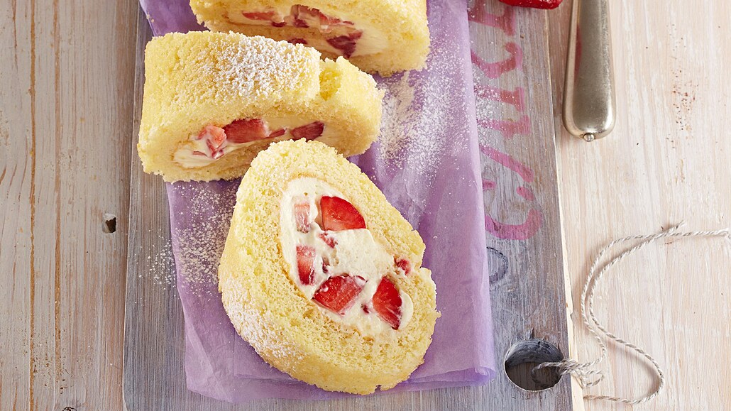 - Vychladlé těsto oddělíme od papíru. Spodní stranu namažeme krémem, posypeme jahodami nakrájenými na kousky a stočíme těsto do rolády. Hotovou roládu necháme v lednici alespoň 3 hodiny zatuhnout.