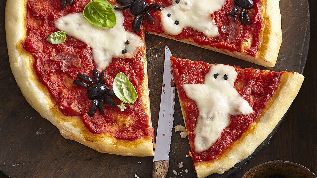 Děti milují pizzu, a tak jim na Halloweena udělejte radost a připravte pro ně úplně speciální verzi s duchy, pavouky a netopýry.