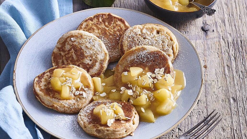 - Škrob rozmícháme ve 125 ml vody a vlijeme do vroucí směsi. Povaříme 2 minuty a odstavíme. Lívanečky podáváme teplé, polité hruškovou omáčkou, můžeme je také posypat vločkami.