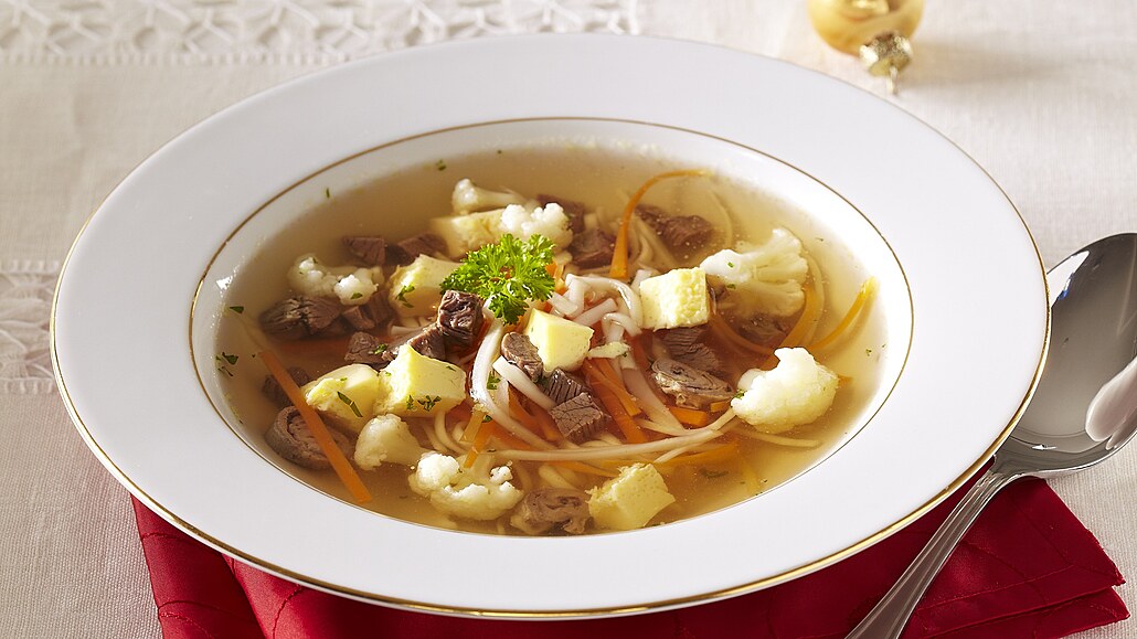 - Vývar přecedíme, dáme do něj maso, nudle, zeleninu a vaječnou sedlinu. Posypeme jemně nasekanou petrželkou.