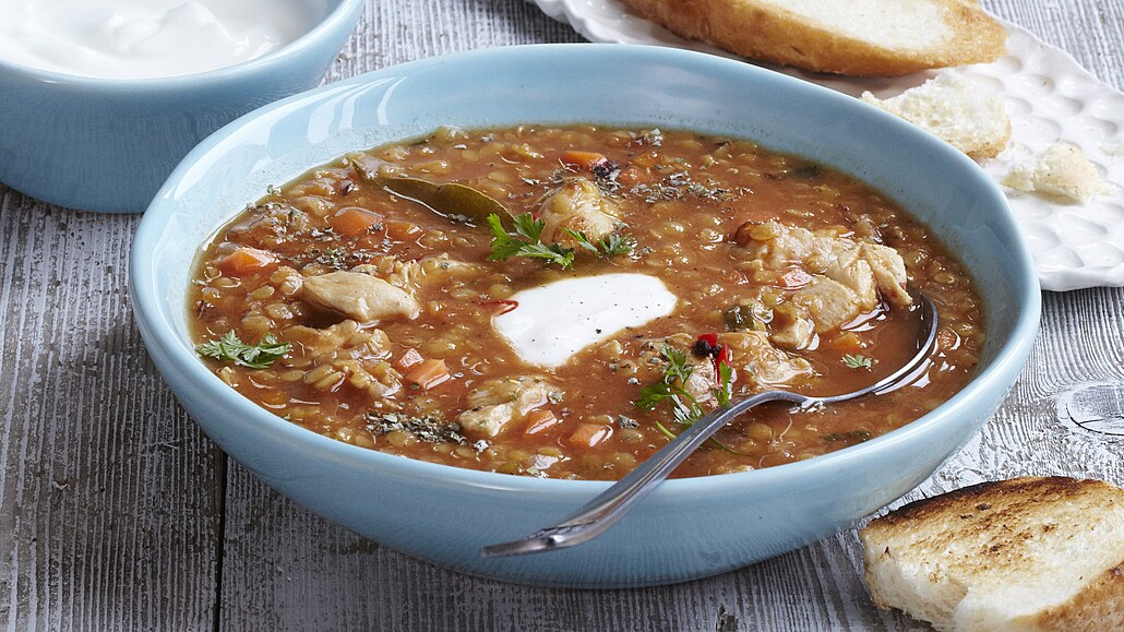 - Jakmile se čočka začne lehce rozpadat a polévka zhoustne, hrnec odstavíme, dochutíme solí, pepřem a nasekanou petrželovou natí. Na závěr můžeme ozdobit kopečkem bílého jogurtu.