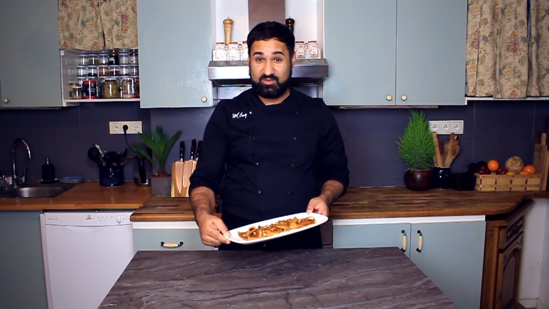 - Celou směs promícháme a po 10–15 sekundách přilijeme pomerančovou šťávu. Zamícháme a necháme zredukovat na polovinu objemu.