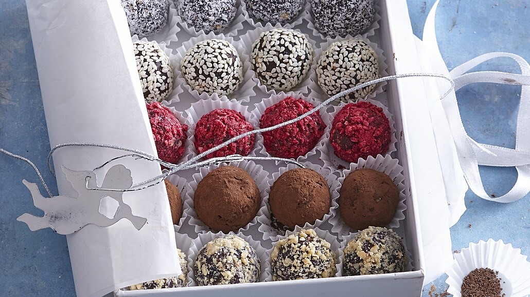- Hotové kuličky obalujeme v kakau, strouhaném kokosu, nadrcených oříšcích, sezamových semínkách, rozdrcených sušených malinách nebo strouhané čokoládě.
