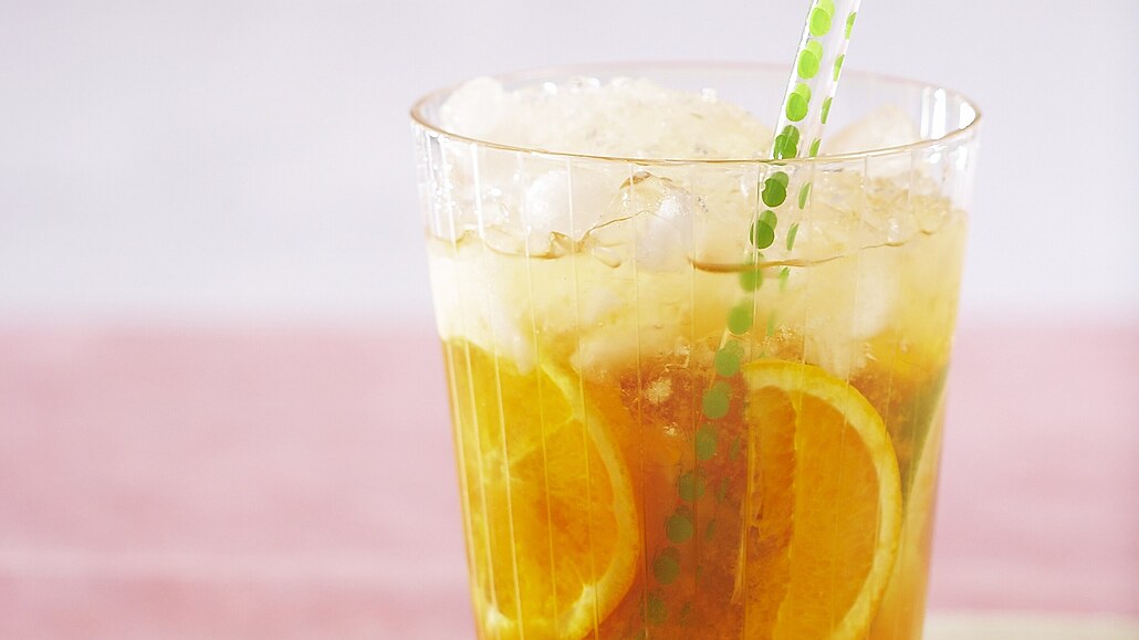 - Pomeranče i limetku omyjeme horku vodou a všechny citrusy nakrájíme na tenké plátky nebo na měsíčky. Led rozdrtíme. Kousky ovoce dáme do sklenic, přisypeme ledovou tříšť a zalijeme čajem.