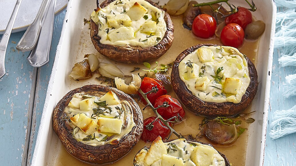 - Pokapeme olivovým olejem a pečeme v troubě vyhřáté na 210 °C asi deset minut. Zapečené žampiony portobello podáváme s pečivem a salátem.