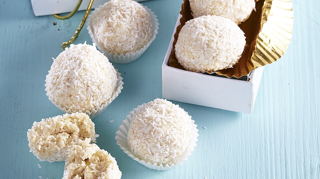 - Vypracujeme tvárné těsto, ze kterého modelujeme kuličky o velikosti 3-4 cm. Do středu každé kuličky vmáčkneme mandli a hmotu kolem ní upevníme. Celou kuličku obalíme v kokosu a necháme v lednici nejméně 2 hodiny odpočinout.