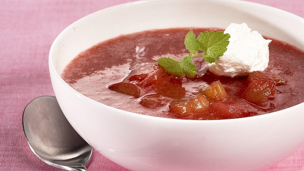 - Zbytek uvaříme doměkka, rozmixujeme, přidáme plátky rebarbory a zahustíme maizenou rozmíchanou v troše studené vody.