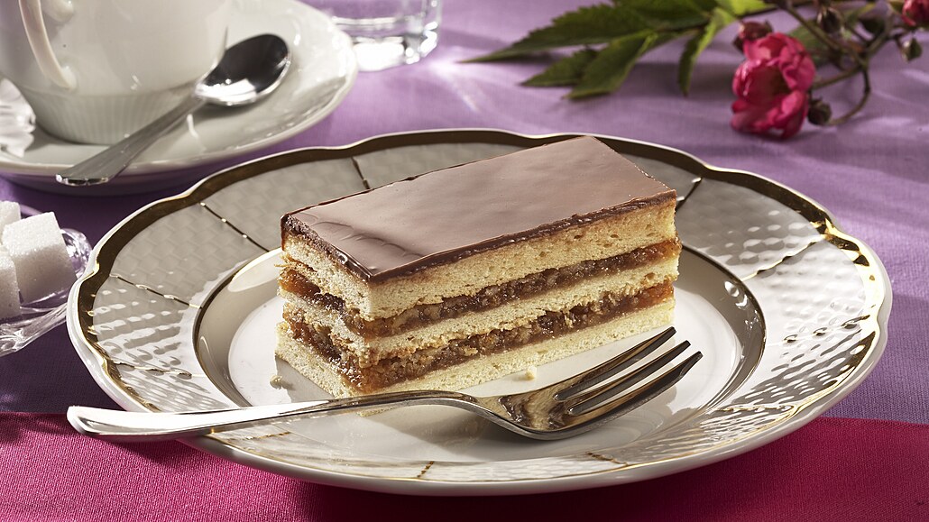 - Navrch položíme druhý plát a postup opakujeme. Vše zakryjeme zbylým dílem těsta. Moučník propícháme vidličkou a vložíme do trouby. Při 180 °C ho pečeme asi 45 minut.