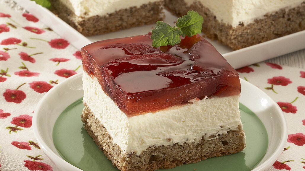 - Želatinu necháme bobtnat ve studené vodě. V horké vodní lázni ušleháme žloutky s rumem a 100 g cukru. Vyjmeme je a vmícháme jogurt. Želatinu rozpustíme na mírném ohni a vmícháme ji do jogurtové směsi. Když zchladne, přidáme dotuha vyšlehanou smetanu. Vychladlý korpus na plechu potřeme krémem.