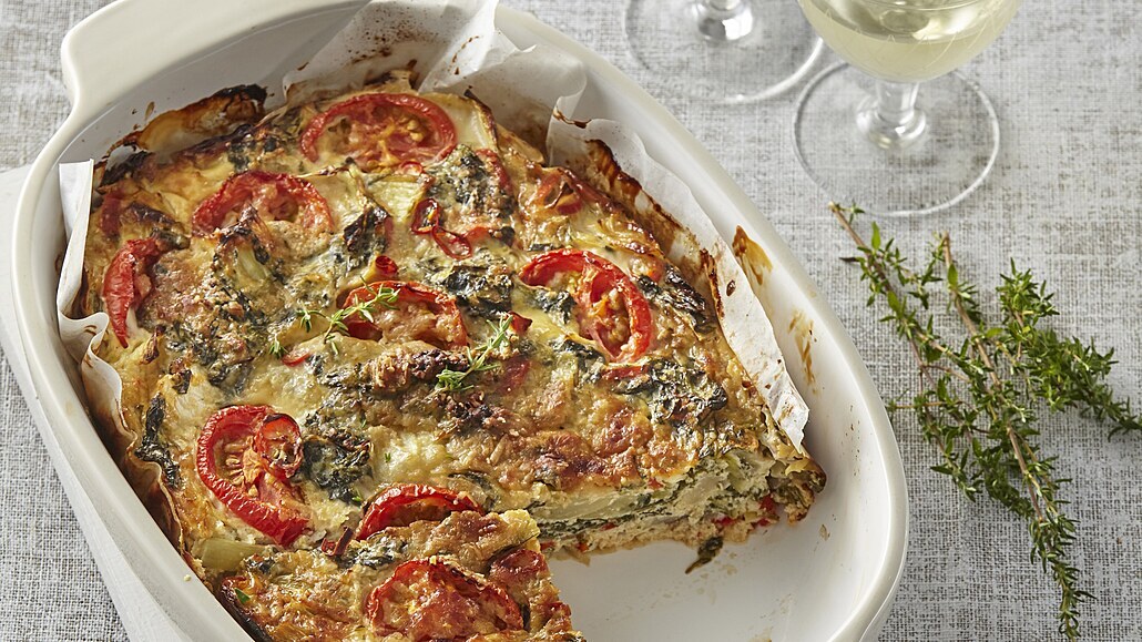 - Nákyp pečeme v předehřáté troubě při 190 °C asi 30 minut. Hotový nákyp vyndáme z trouby, necháme odpočinout a můžeme podávat.