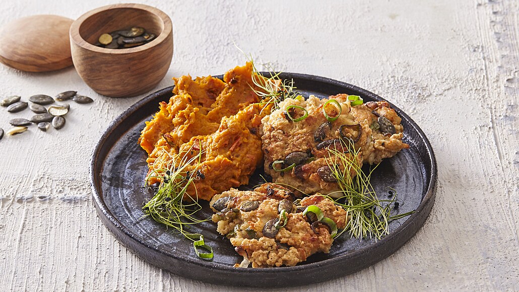 - Pak vytvoříme placičky, které smažíme na troše rozehřátého oleje z obou stran dozlatova. Podáváme je s dýňovým pyré.